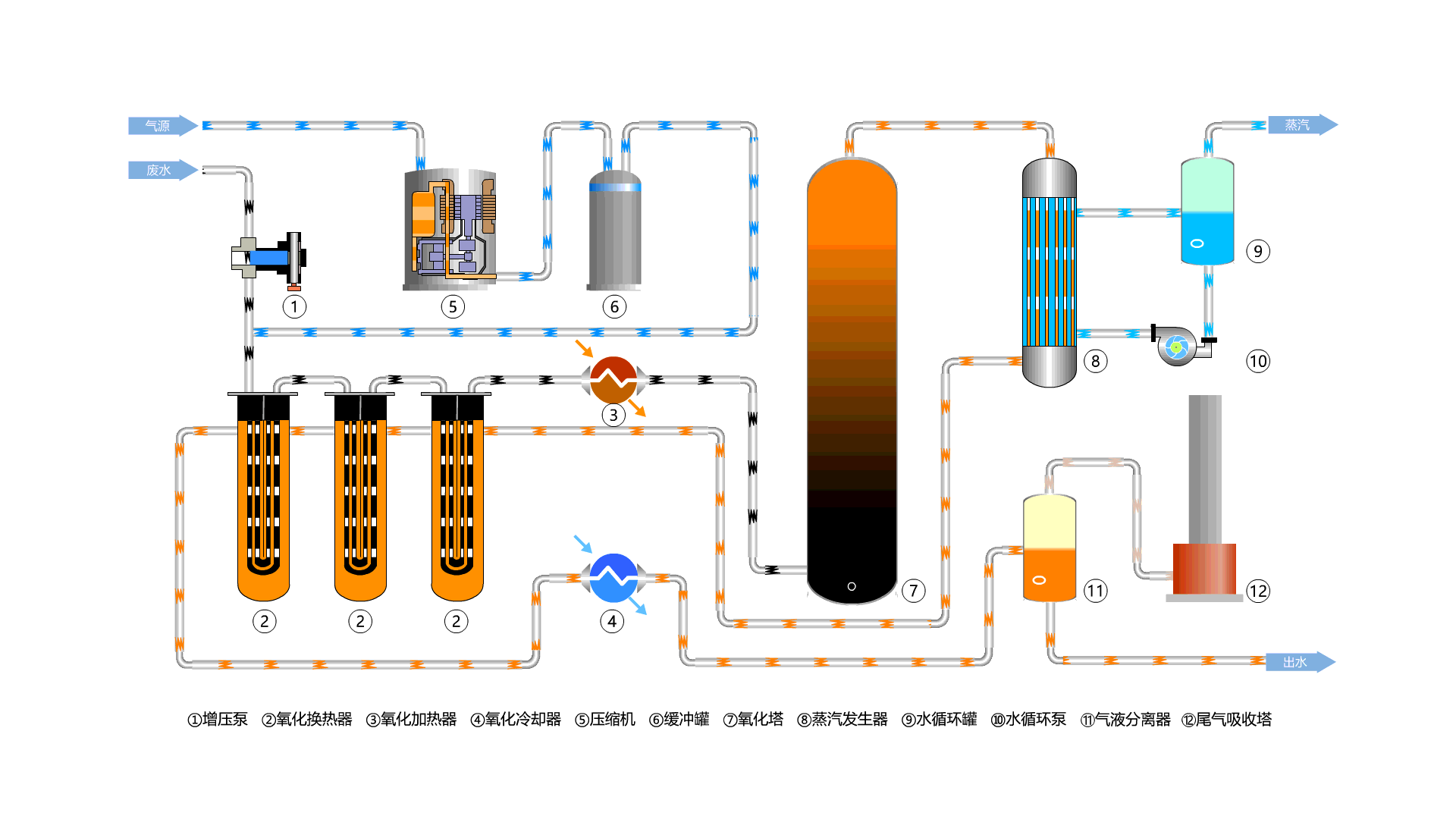 2、处理效率高:CWAO技术可使多数有机废水的COD去除率达90%以上,且出水可生化性得到较大提高;